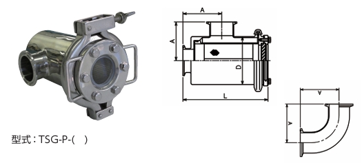 サイトグラスとピタエルストレーナーが一体化した製品。ピタエルサイトグラス同様接続寸法がヘルールエルボと同じなので、既設の配管と取替えが可能です。