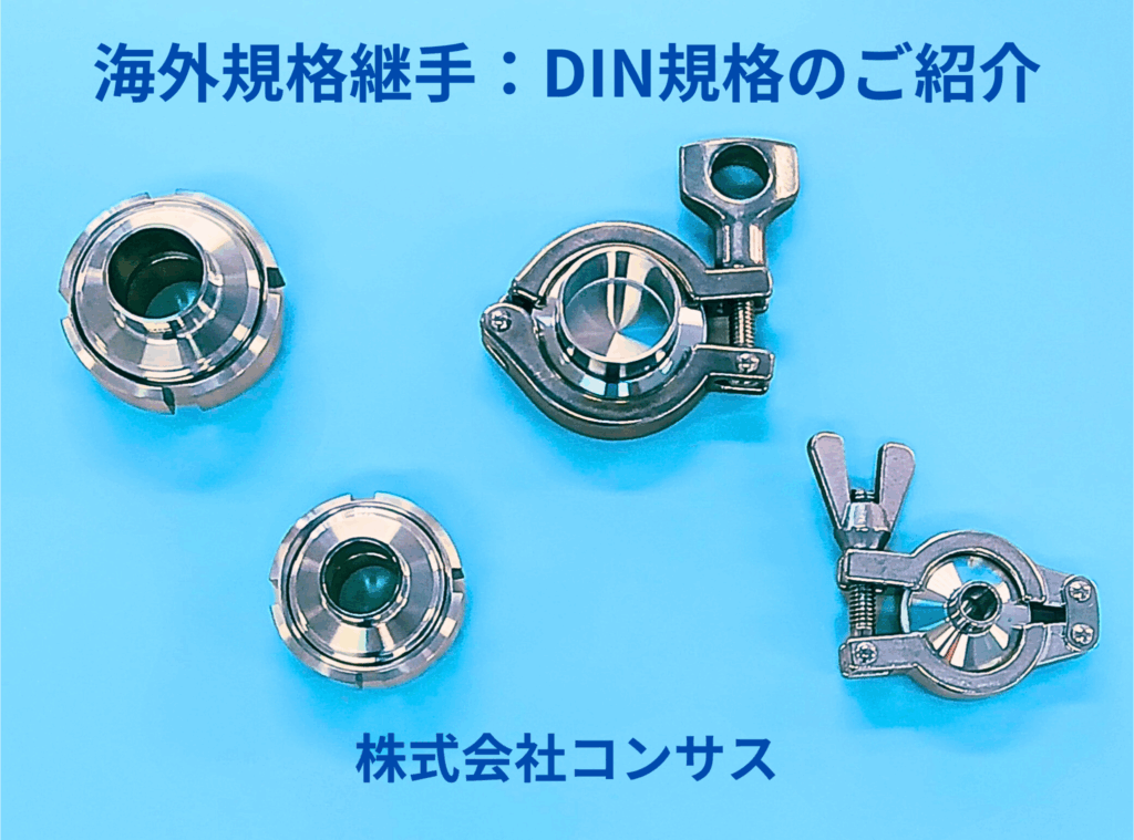 コンサスでは、海外規格継手のDIN規格から日本のIDF規格・ISO規格に変換ができる