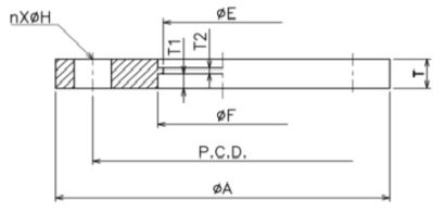 | サイズ | φA | φE | φF | T | T1 | T2 | φH | n | P. C. D |
