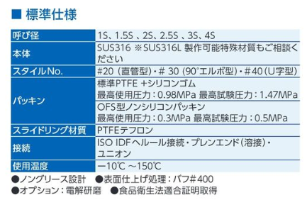 ジョイント本体は分割型でサニタリー用クランプバンドで固定する為、分解・洗浄・組立が容易。コンパクト設計で軽量なので取扱が容易で、メンテナンスが簡単です。