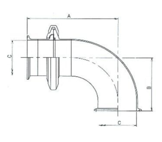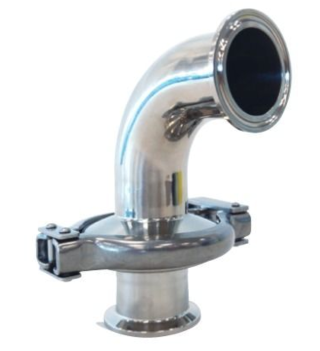ジョイント内部はフラットな形状、サニタリーシープエルボを使用しパッキンは液だまりを防止する形状です。CIP洗浄にも対応しています。