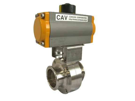 ステンレス316L アクチュエーター付サニタリーバタフライバルブ(ロング面間) CBA